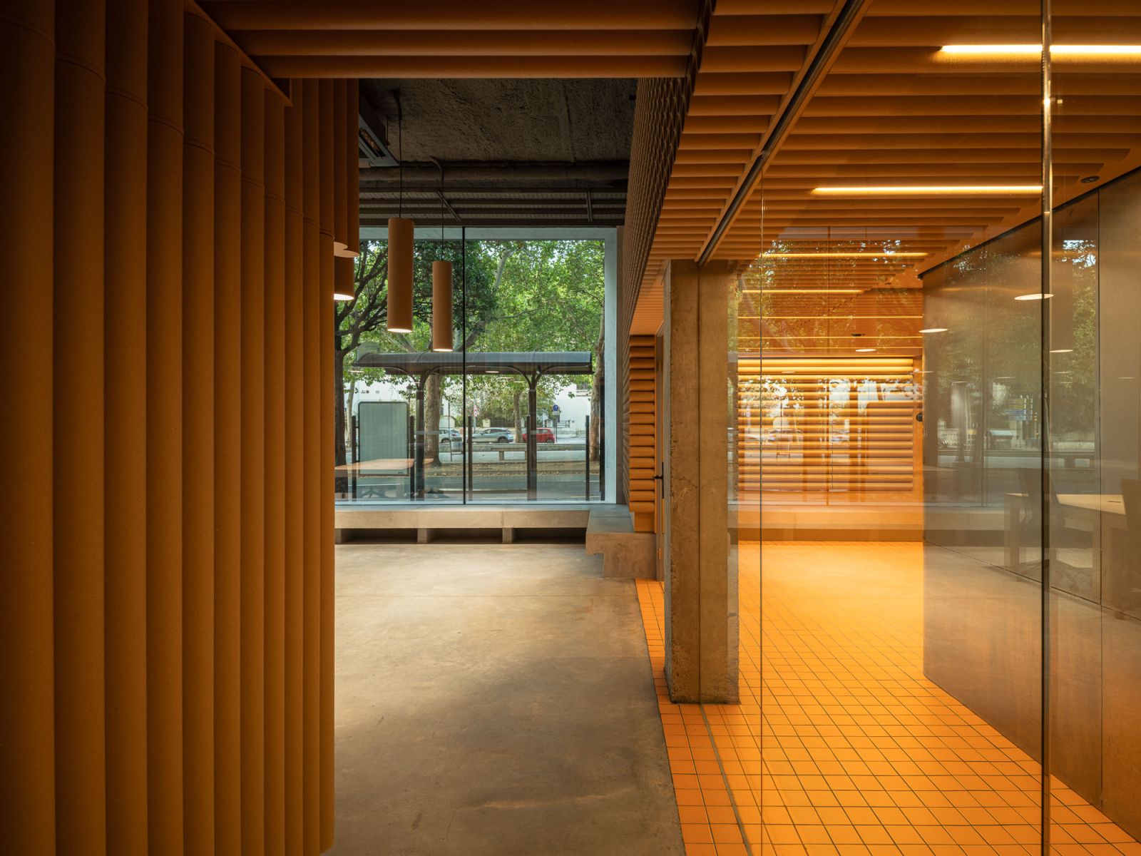 Cea mai recentă demonstrație vine din Granada, Spania, unde biroul Tomás García Píriz Studio a semnat sediul Crucii Roșii „On The Street” – o clădire care combină MDF și carton într-un ansamblu inovator, cald și surprinzător de durabil. În loc să ascundă materialul, arhitecții îl expun cu mândrie: cartonul devine plafon fals, panou acustic, element de ventilație și chiar parte din structura vizuală.
