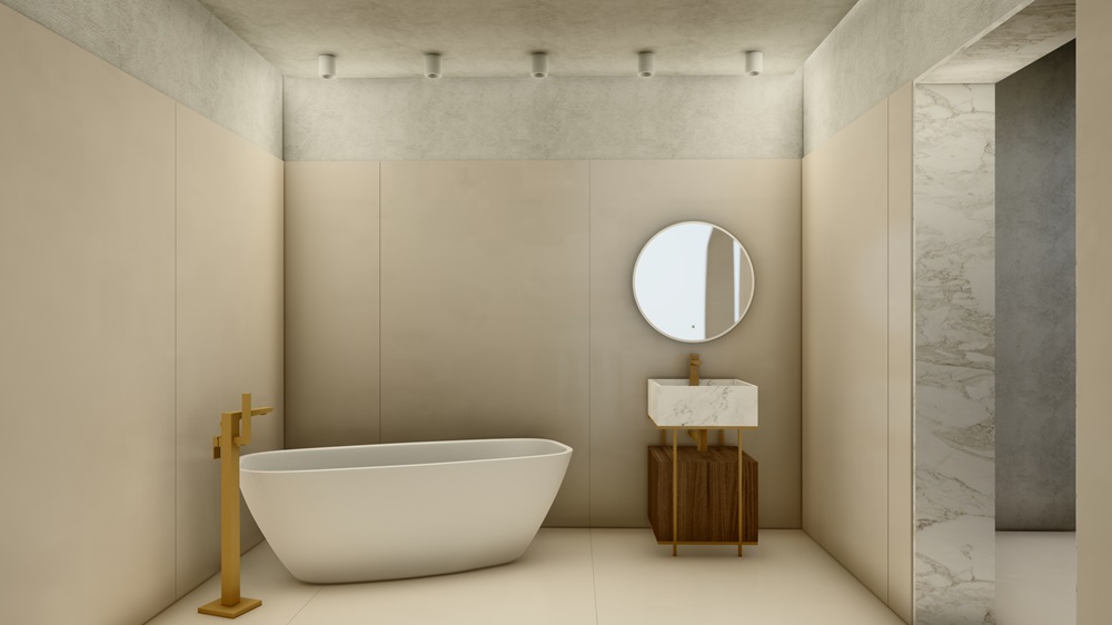 La exterior, zonele pline au fost fie finisate cu tencuială de argilă brută, fie acoperite cu șiță arsă la fața locului. La interior, în zona serei, singura zonă de plin este cea a accentului vertical, șemineul tencuit. La capătul opus se află un accent de culoare și textură, sub forma unui bar de teracotă.
