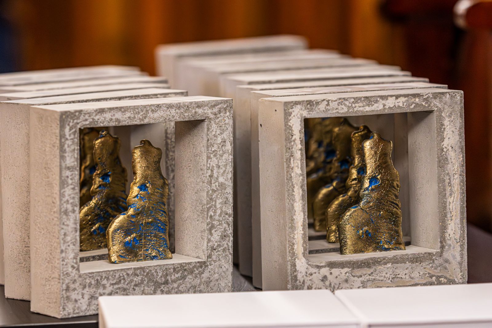 Trofeele oferite câștigătorilor au fost realizate de artista Miruna Copăcel, în urma unui concurs organizat împreună cu Universitatea de Artă și Design din Cluj-Napoca și susținut de ROMCIM. Tema din acest an, est.etic, a fost interpretată prin integrarea betonului ca material simbolic al construcției contemporane.