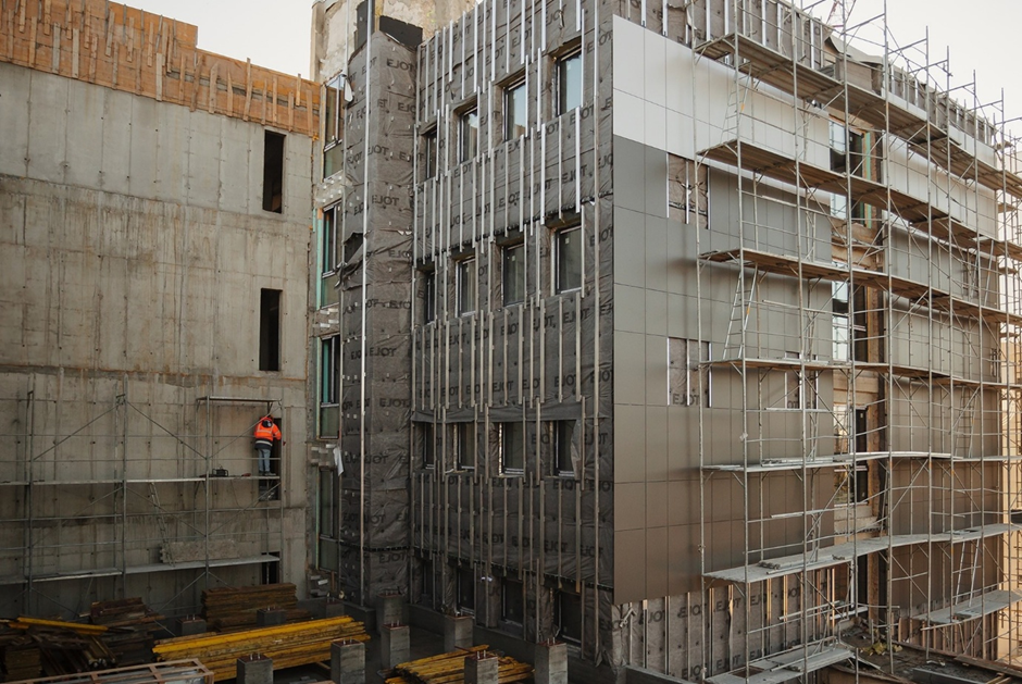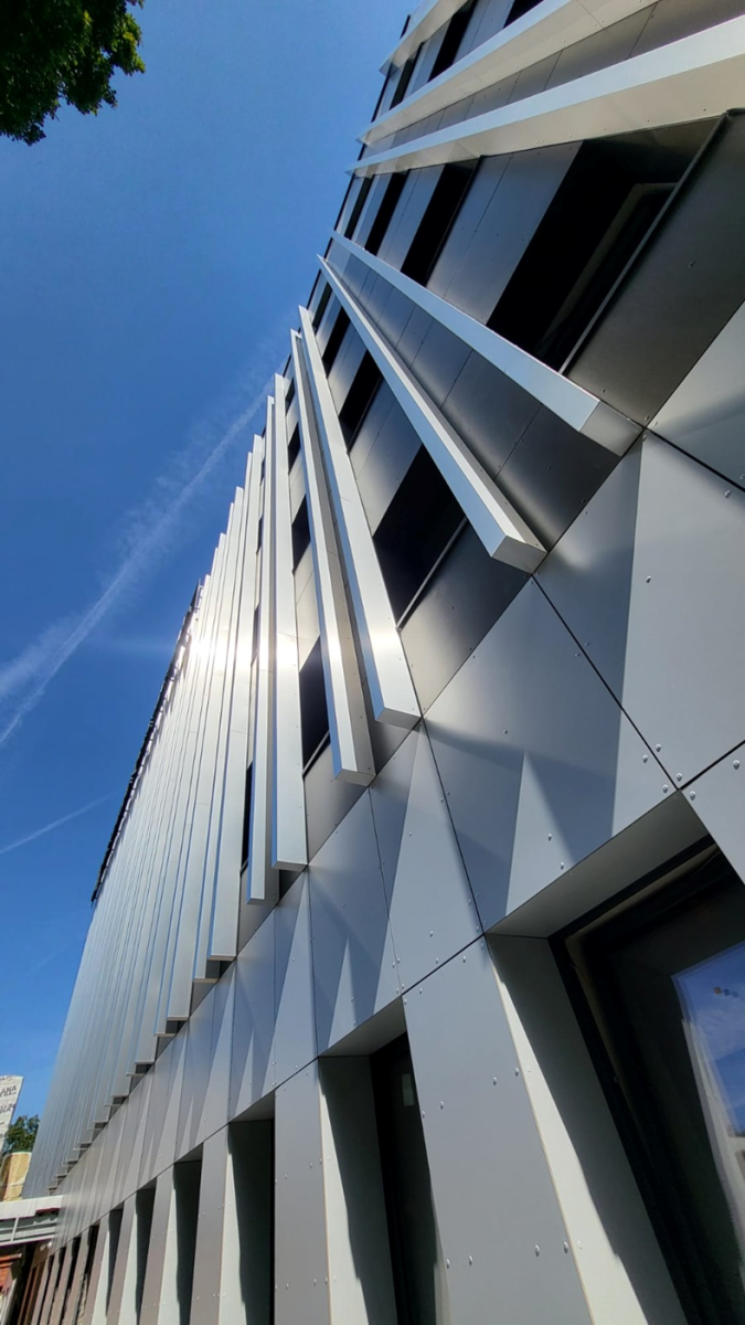 Încă din faza de concept, sustenabilitatea a fost o prioritate. Fațada ventilată cu panouri HPL contribuie la eficiența energetică și la durabilitatea construcției, în timp ce fațada verde montată pe o structură metalică aduce beneficii reale mediului: oxigen suplimentar, temperaturi reduse în jurul clădirii și o estetică plăcută. În plus, parcarea automată etajată optimizează spațiul și reduce poluarea cauzată de traficul în căutarea locurilor de parcare.