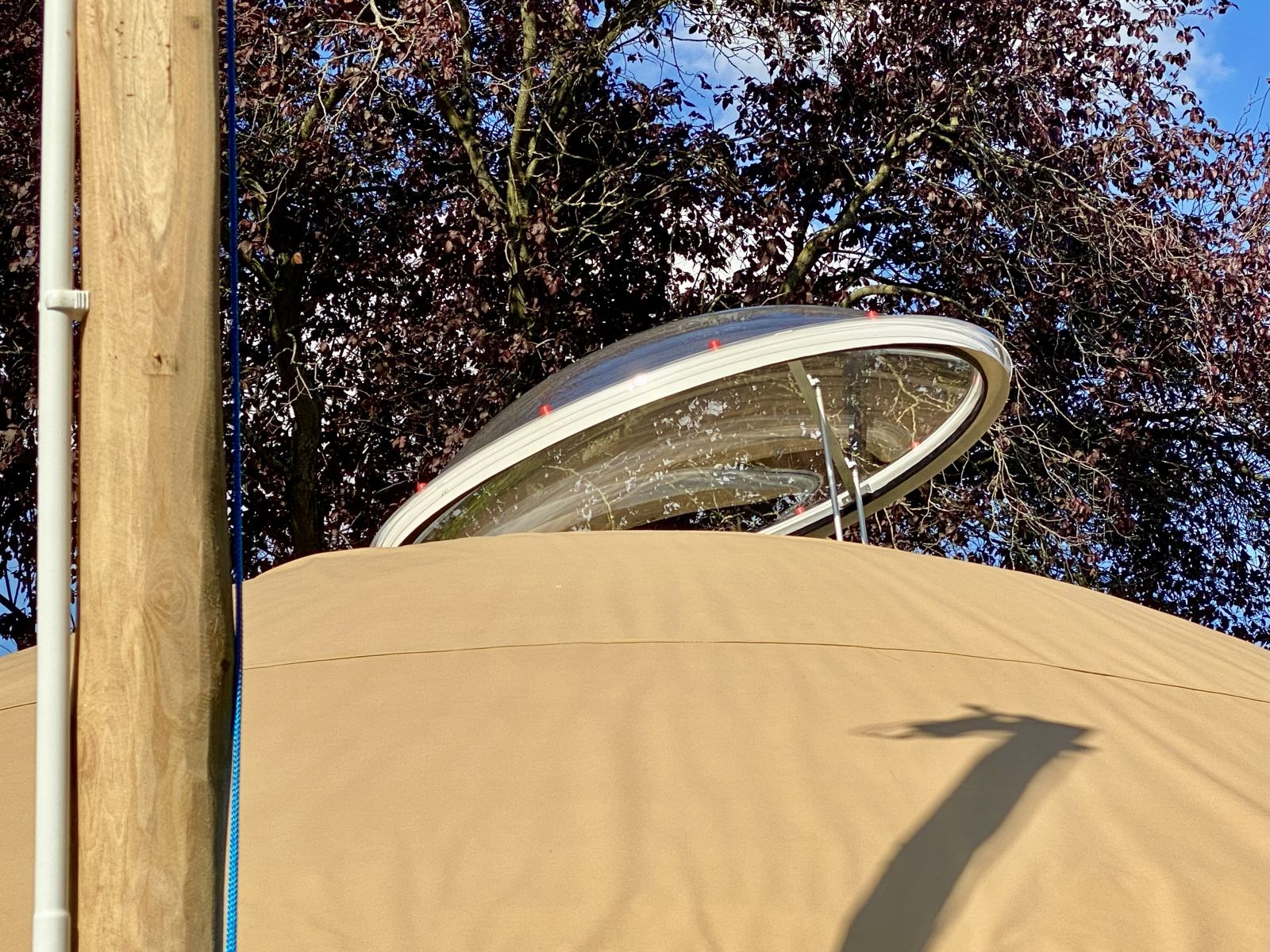 Cupola Top 90 umple iurta cu lumină naturală, creând o atmosferă caldă și primitoare și evidențiind arhitectura sa rotundă, unică. Modul în care lumina se joacă în interior transformă spațiul, făcându-l să pară și mai deschis, vibrant și cu adevărat magic.