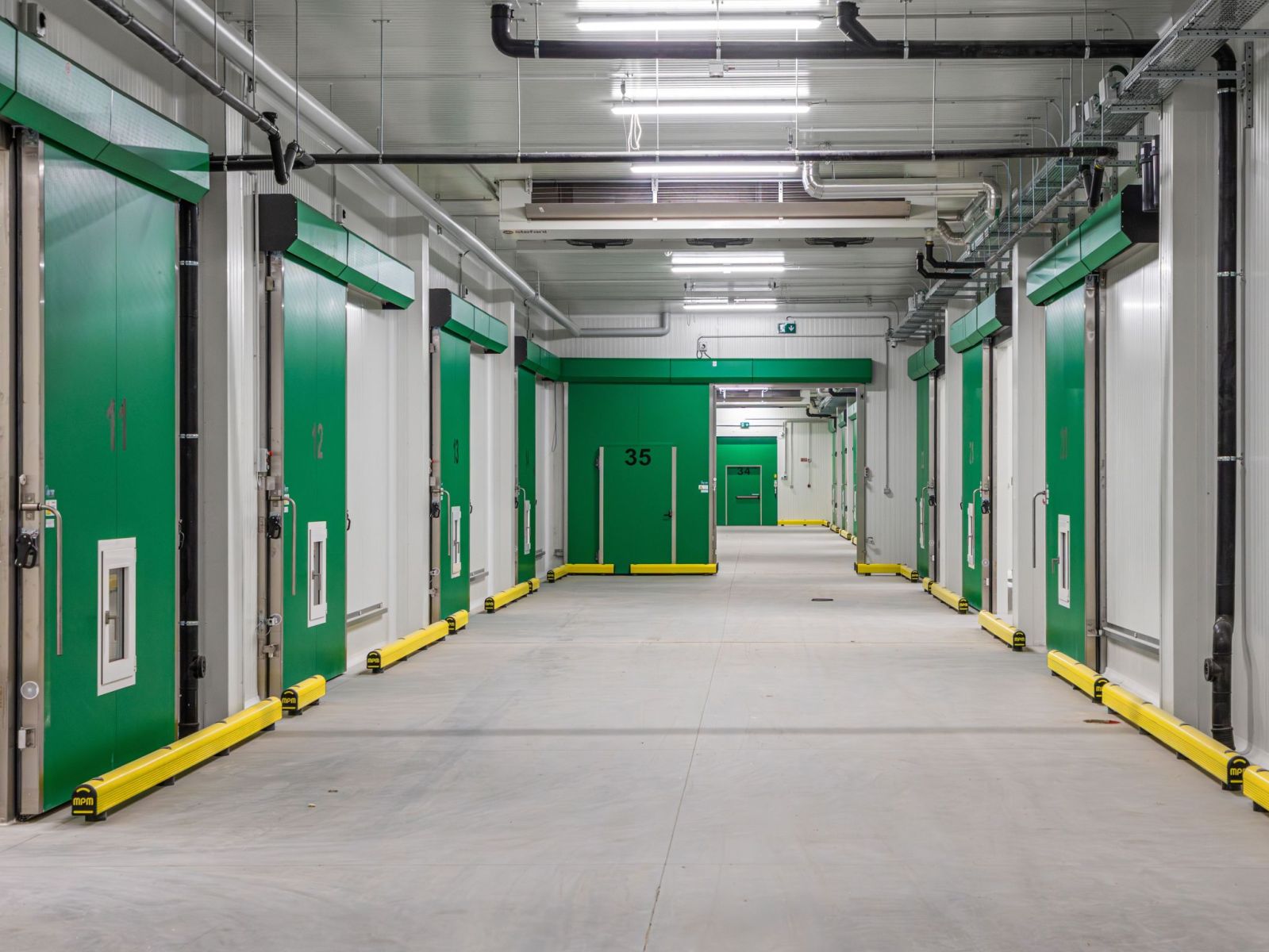 Pentru camerele frigorifice interioare au fost utilizate panouri Isofrozen, dezvoltate special pentru aplicații la temperaturi scăzute. Acestea oferă o etanșeitate termică ridicată, condiții optime de igienă și stabilitate în timp a parametrilor de funcționare. Utilizarea mai multor grosimi — 60, 80, 100, 120 și 150 mm — a permis adaptarea izolației la cerințele specifice fiecărei zone de depozitare, optimizând consumul energetic și performanța globală a sistemului.