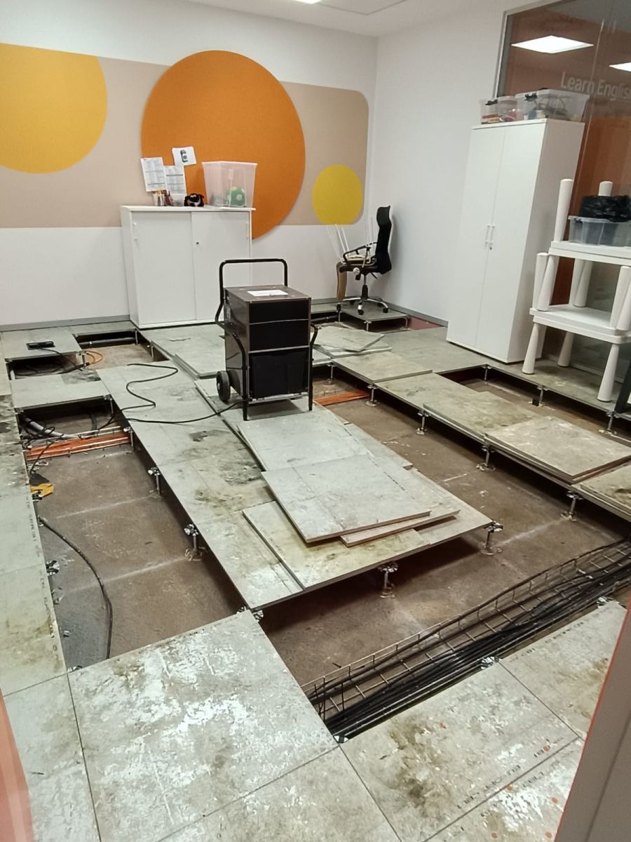 Studiu de caz: Cum au fost dezumidificate birourile cu pardoseală flotantă după o inundație