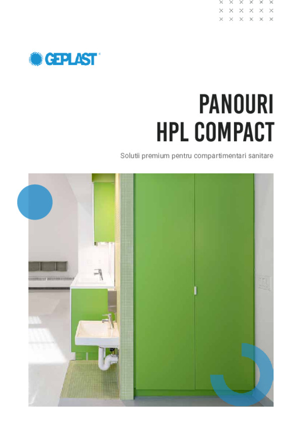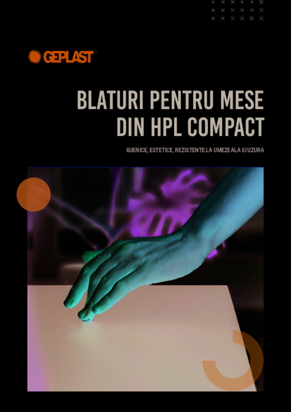 Placi din HPL (high-pressure laminate) cu miez negru compact, colorat in masa, si ambele fete prevazute cu suprafata decorativa din rasini melaminate. Materiale rezistente la umiditate, rigide si plane, usor de intretinut, antibacteriene, disponibile intr-o varietate de culori standard si decoruri imitatie lemn si beton. Placile compacte din HPL se prelucreaza si monteaza cu usurinta, se pot decupa CNC si freza sau grava pe suprafata pentru redarea oricarui model / concept dorit.